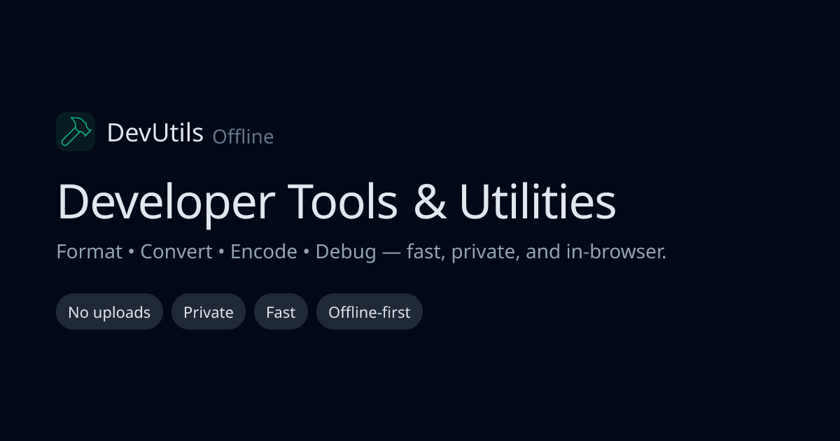 A suite of offline-first, client-side developer tools including JSON formatters, SQL beautifiers, and more.